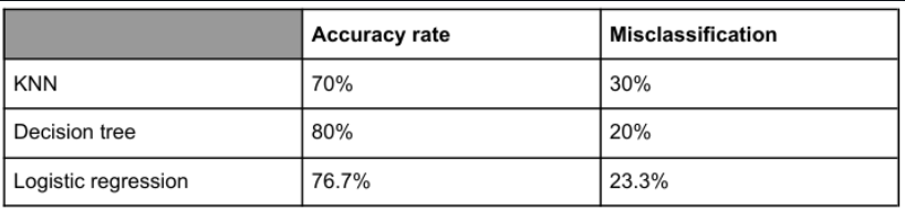 For supervised methods (KNN, Decision Tree, Logistic Regression), accuracy rates are relatively high and similar; Decision Tree achieved the best accuracy in this study.