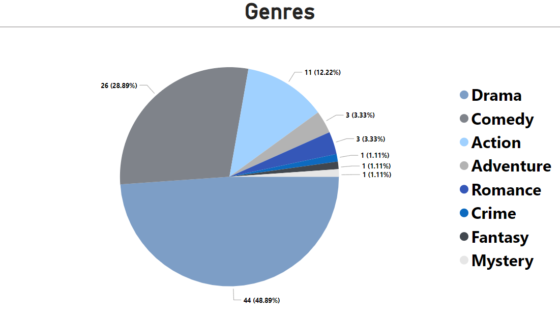Pie chart of genre distribution (Drama is most dominant):